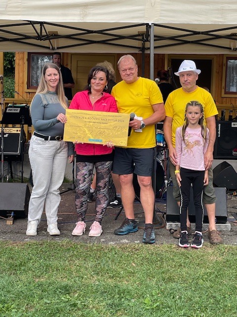 Závěr akce patřil slavnostnímu okamžiku – předání šeku na částku 32 060 Kč a poděkování všem, kteří se na akci podíleli