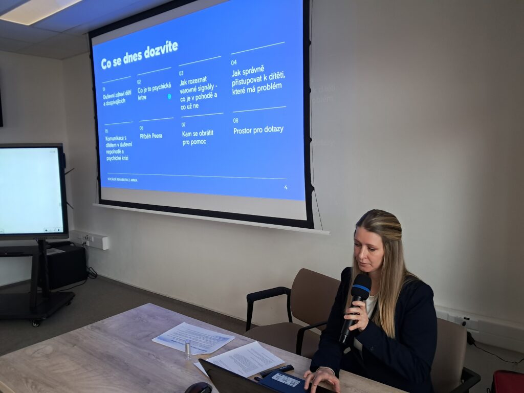 Seminář nabídl pedagogům ucelený pohled na projevy nejčastějších duševních onemocnění u dětí a dospívajících, jejich příčiny a možné následky. Důležitou částí programu byla diskuse o tom, jak s žáky efektivně komunikovat, jak jim nabídnout podporu a jak rozpoznat varovné signály, které by mohly vést k vážnějším problémům. Velmi přínosné byly i příběhy z praxe, které pedagogům pomohly lépe pochopit, čím si jejich žáci mohou procházet. Součástí semináře byl také stup peer konzultanta, který se podělil o svůj vlastní životní příběh a cestu k zotavení. Jeho sdílení bylo pro přítomné pedagogy velmi inspirativní a přineslo jim nový pohled na roli učitele při podpoře duševního zdraví žáků. Důležitou součástí semináře bylo také mapování dostupné pomoci, kdy účastníci získali přehled o možnostech odborné intervence v Sociální rehabilitaci Amika, spolupráci s psychologickými poradnami, krizovými centry a dalšími organizacemi, které se věnují podpoře dětí s duševními obtížemi.